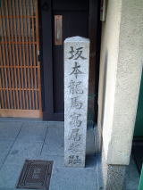 | 中岡慎太郎寓居あとを過ぎてどんどん上がり、三条大橋の近所まで来たところに、近江屋さん跡があります。坂本龍馬と中岡慎太郎が遭難した場所。お店の中で、たまに坂本龍馬に縁のイベントをしていたりします。 |