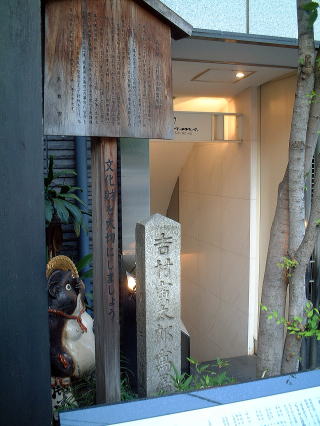 これは木屋町通りにある吉村虎太郎の寓居跡。寺田屋事件のために捕縛されて土佐に送り返されていた彼は、朝廷の内旨によって許され、再び上洛し、文久三年二月から八月まで、この地に隠れ済んでいました。 |