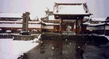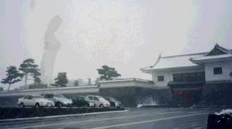 | ご覧の通りの雪で、だんだん吹雪いてくるありさま。ここは冬場は朝9時半から夕方4時半までなので、早めに訪れてさくさく廻ったほうが良いです。中ひろいです。 写真の南門は藩主をはじめとする上級武士だけが出入りを許されており、生徒は東門・西門から出入りしていました。 |