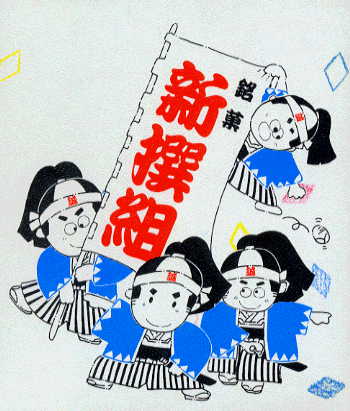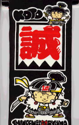 前髪の惣三郎?イラストは、ちっちゃいのによく描けている。裏面には「誠」と金文字で書かれている。 |