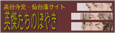 英傑たちのぼやき | 伊東かっしー鈴木みっきー、斉藤一など月真院党パワー炸裂のたかさわあきほさんのサイトです。そして仙台藩プロジェクトも同時進行中。凄く可愛いイラストがたくさんです。 |